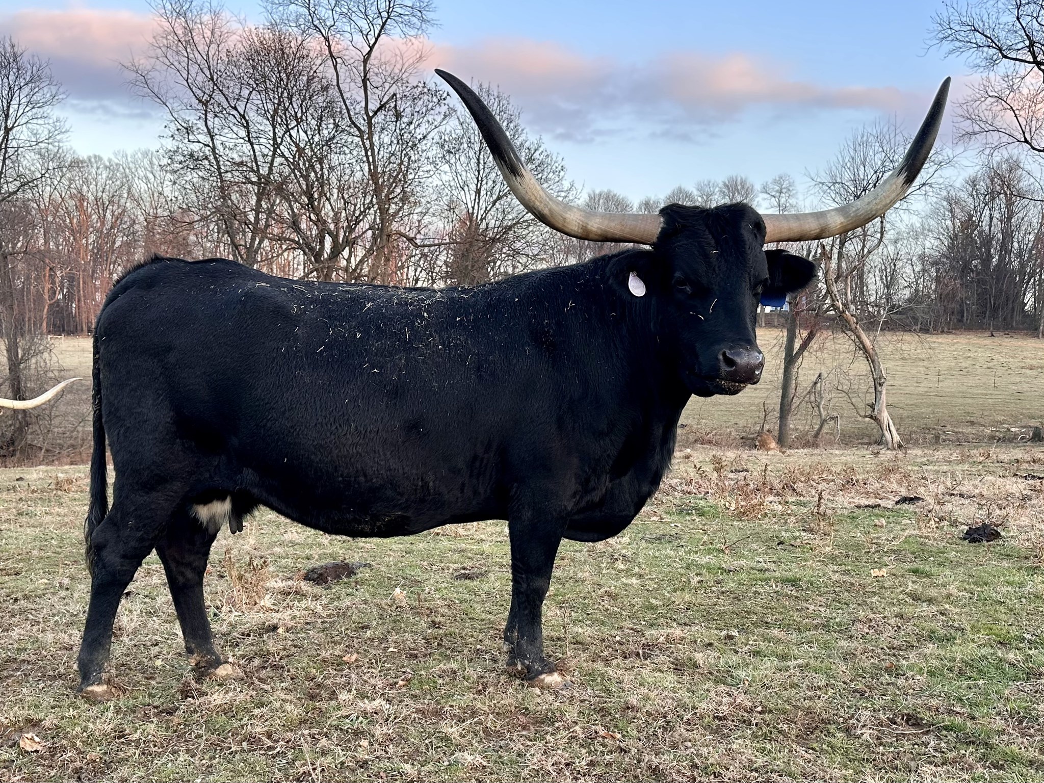 Night Quest was our first ever registered cow. She is our herd boss, and does such a great job keeping all the other ladies on their best behavior. In 2022 she produced Starry Night- the best heifer prospect ever born on our ranch. In late 2023, she gave birth to another Patton HB daughter that we're really excited about.
