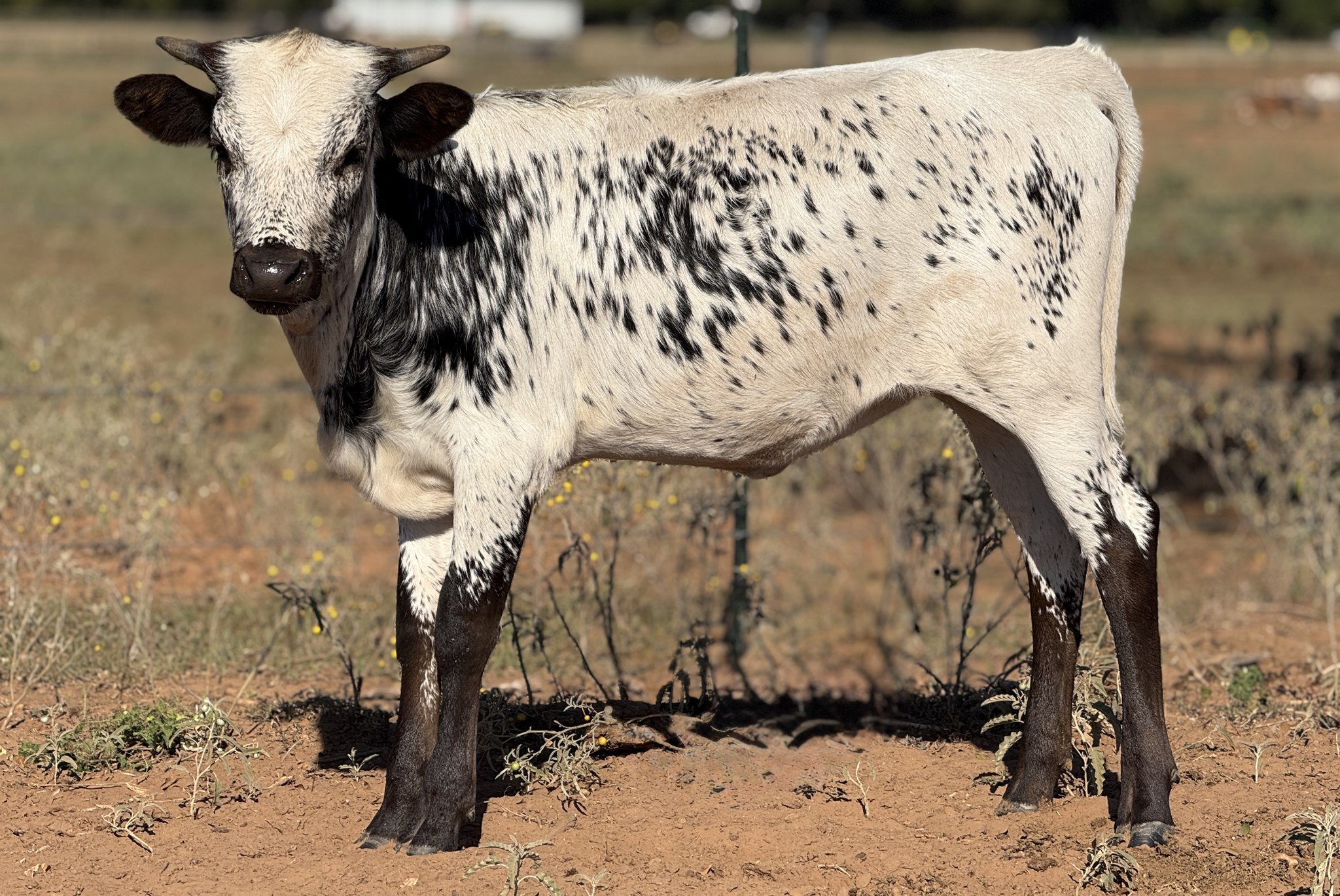 This beauty is sired by B&W super bull HL JANGO! Grandams are 101”+ RM MISS KITTY and 99” LTL Lady Luck! 2X Horseshoe J Example, RC Pacific Mermaid, 2X Delta Vixen, 2X Concealed Weapon, 2X Tejas Star