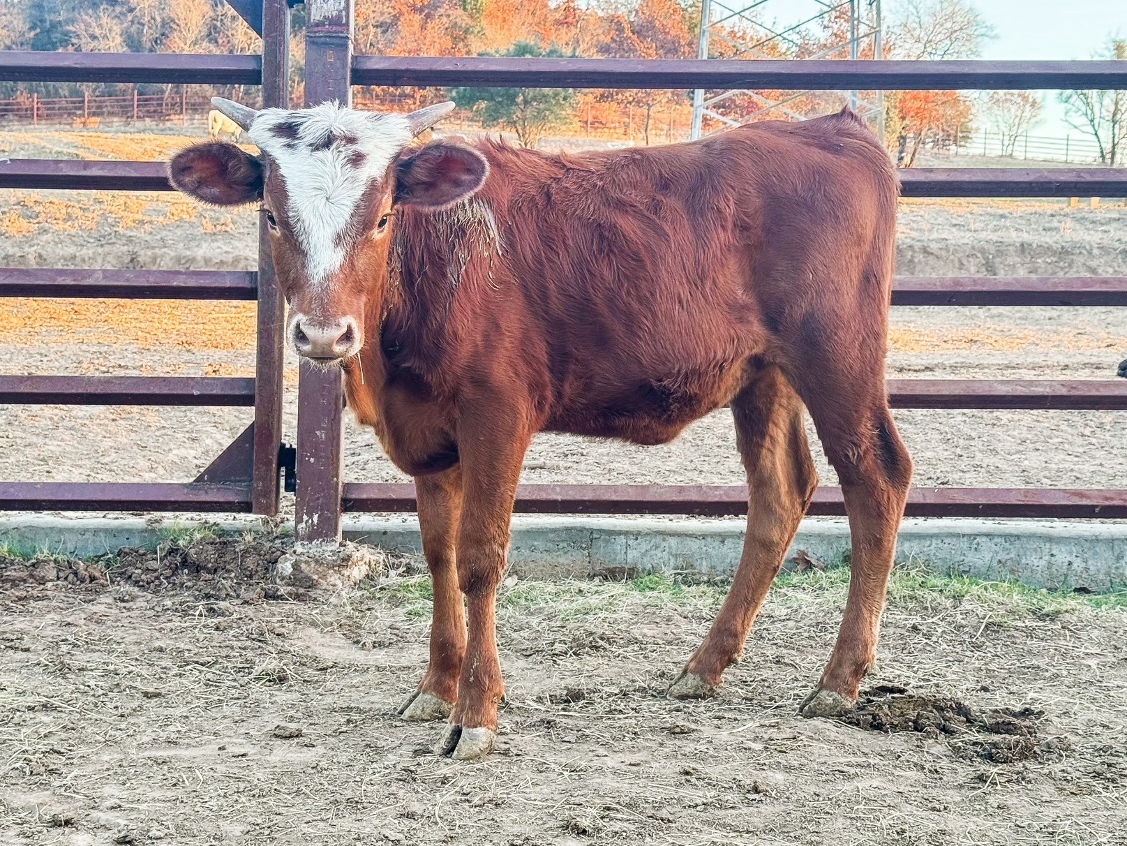 Amazing Embryo calf out of WS Hydro and PG Black Friday. She's built for size and horn and her frosted face has us smitten.