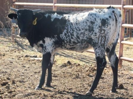 Alamo is a gorgeous true black cow with lots of flash. She's a big bodied, laid back girl with an amazing temperament. She throws a high percentage of black and white offspring.