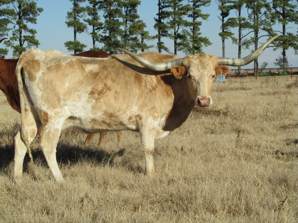 "Sunny is currently in our beef herd. She is a beautiful twisty horned cow and will probably be rotated to our home herd in the next few months.