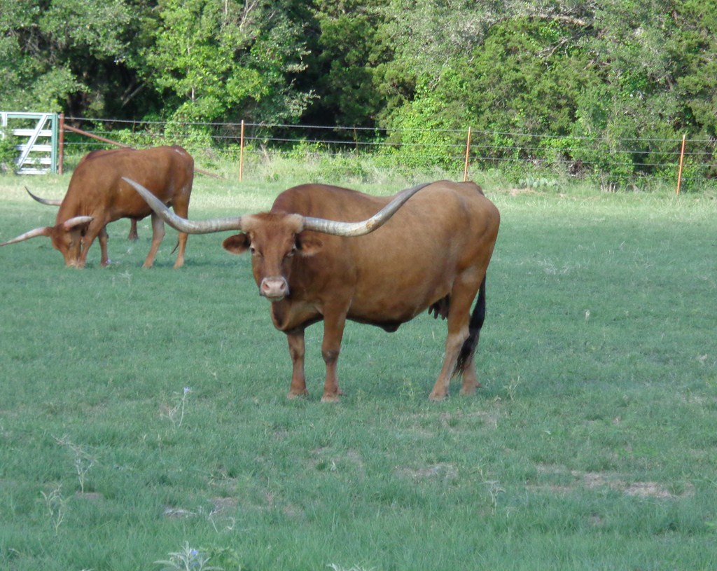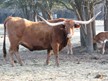 KoKo was the second heifer we purchased from Bob Loomis. She is a fine example of what a longhorn should look like. She is gentle, but she definitely does not like to be touched. We call her the protector of the herd because when new calves are on the ground, she is ever vigilant against potential threats. A 75+"T2T cow, she out produces herself, and is a great mother. She is a foundation cow, for sure. KoKo has given us a wonderful little heifer for 2013.
