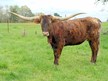 This has to be one of the most beautiful cows I have ever seen! This is the type of cow every breeder dreams of owning. The color, the size, the conformation and pedigree. She is a good mother and raises really nice calves. Great udder really produces the milk. The only reason the seller is considering selling her is, they have two daughters and a full sister in their herd. Her service sire, TK Lee is one of the largest horned bulls in the breed. He has 107" of total horn with 7" broken off one side. He was 81" T2T at less than 35 months old. Did I mention he too is brindle?!? New photo taken 1/22/17.