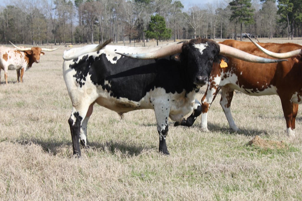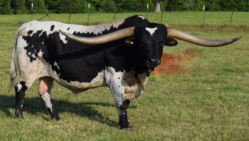 This Black and White bull is one of the bigger Tuff sons and is now 89 3/4" TTT, Predicted at 90.67". He was 89" TTT as of 5/15/2022. He is a very correct type of animal with a stretchy side and a strong topline. He produces very correct and flashy offspring. He is now owned by the Baca/Pemberton partnership.