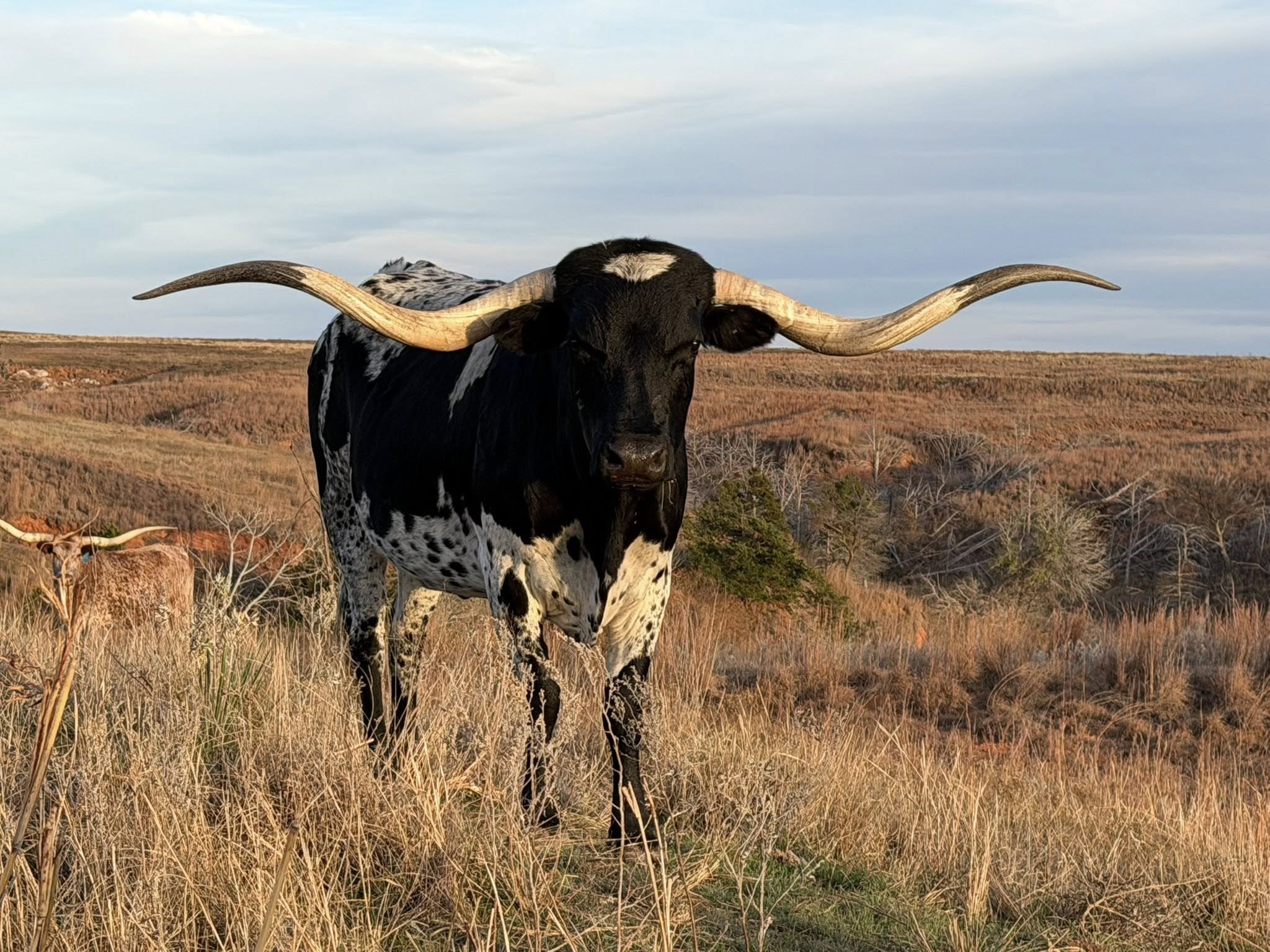SOLD!!! Going to Brazil! Smooth as Chocolate, Bold as Her Bloodline 🍫 Black and white beauty with a presence that stops you in your tracks — this girl is as smooth as a chocolate bar and twice as rich in pedigree. Her twisty horn set goes on for miles, adding elegance and edge to a frame that’s built to impress. An own daughter of White Dragon and out of Overkill, she carries the kind of lineage that doesn’t just decorate pedigrees — it defines them. She’s not just part of our herd — she’s part of our foundation. The kind of female that programs are built around and futures are shaped by. Producing us calves every year! PV'd and DNA on file