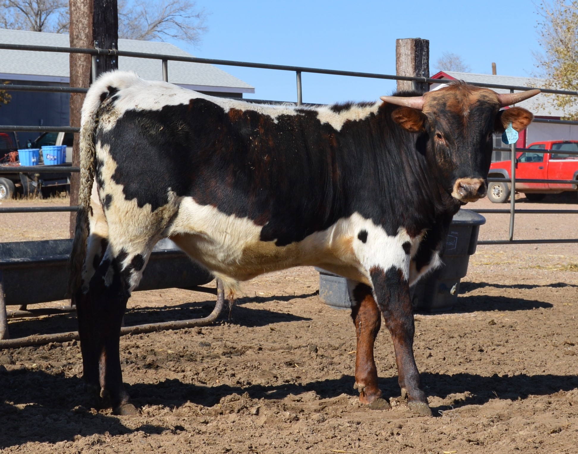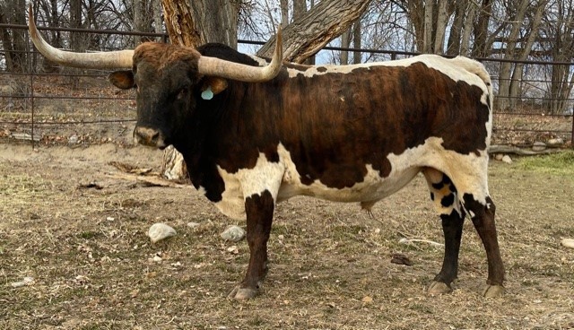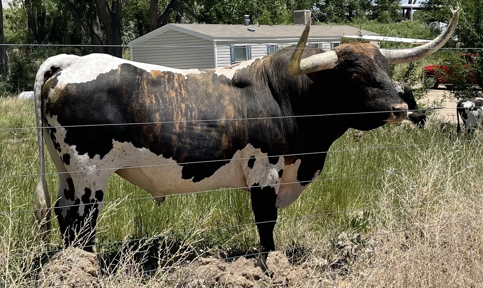 Iron Man LV is a very large bull measuring 61" hip height. He is approaching 2000 pounds. He carries the wild gene and put the color on his offspring. He placed 2nd at the Enid Legends Futurity in 2020. We lost him due to a business decision.