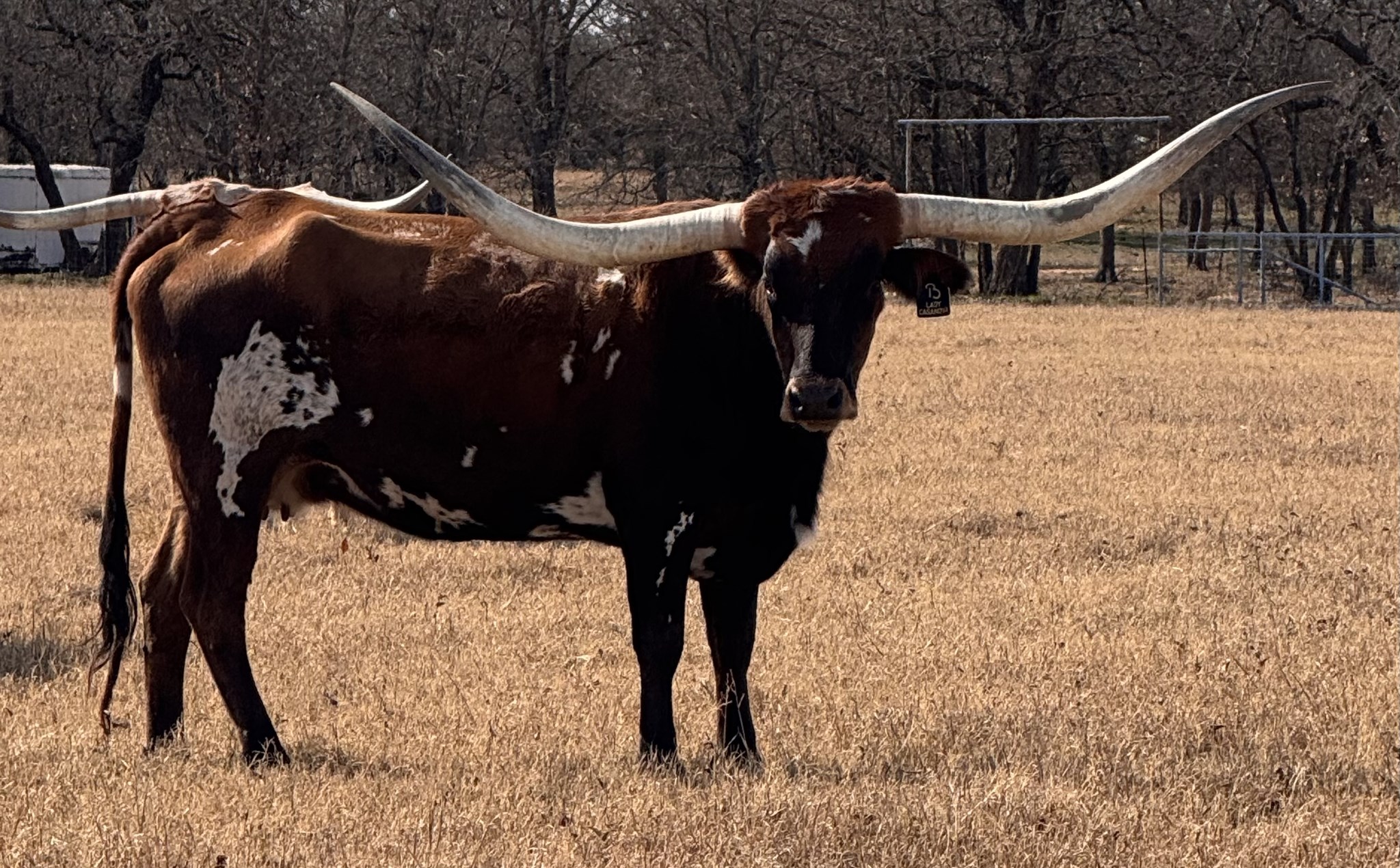Lady Casanova is a cow that checks all the boxes : color, conformation, horns, genetics. Shes the daughter of over 90 “ TTT Hubbells Super Nice and legendary $100,000 CV Cowboy Casanova. She’s got a strong pedigree that boasts Sittin Bull, Peacemaker, Hunts Command Respect and Rio Glory. This is your chance to own a fantastic cow and a strong baby. She’s bred to 6x Futurity Champion Bux Golden Eagle for a beautiful spring calf.